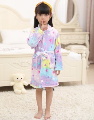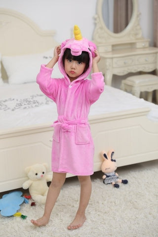 Cute Baby Bathrobes for Girls Pajamas Kids Rainbow Unicorn Pattern Hooded Beach Towel Boys Bath Robe Sleepwear Children Clothing